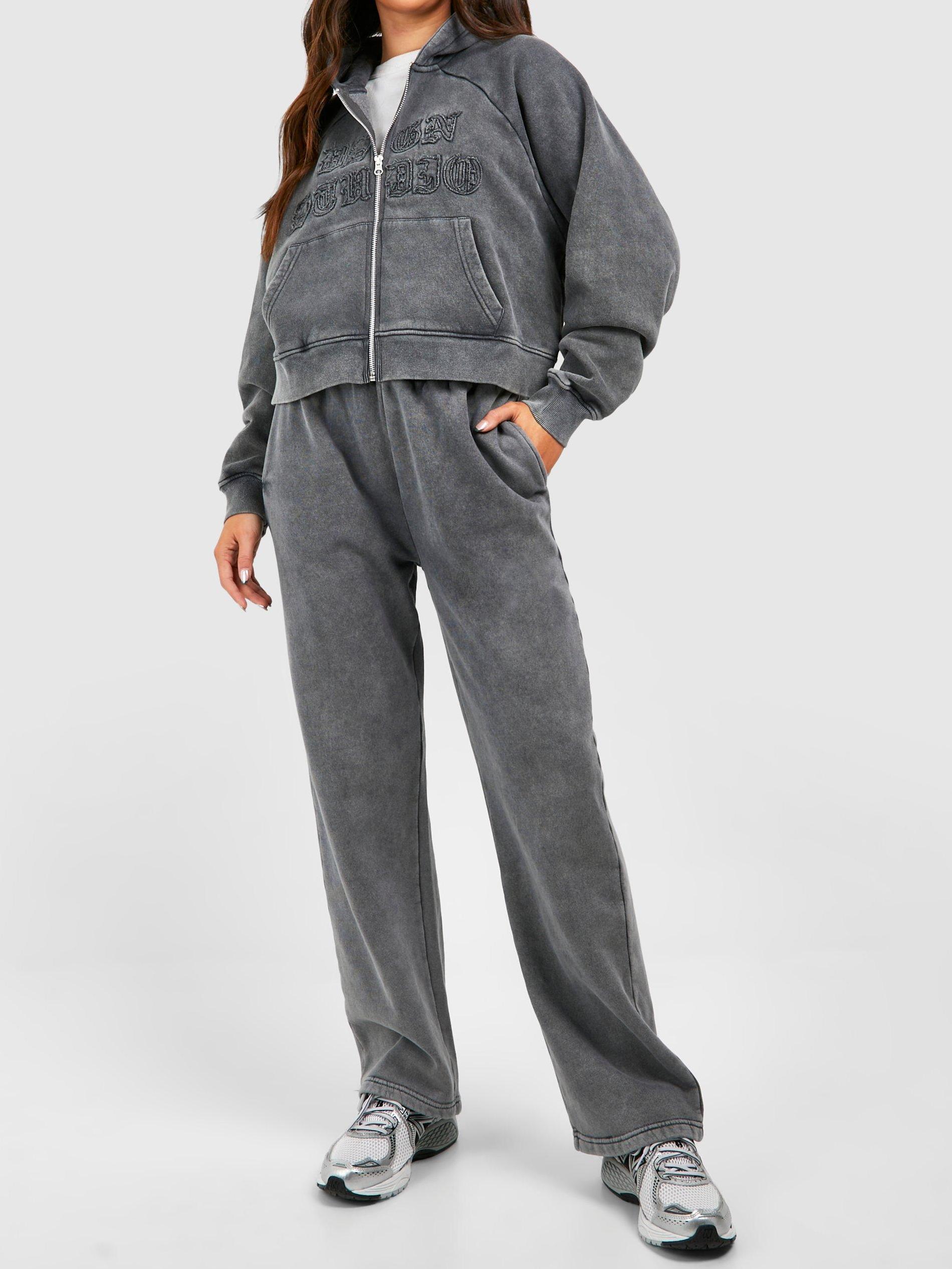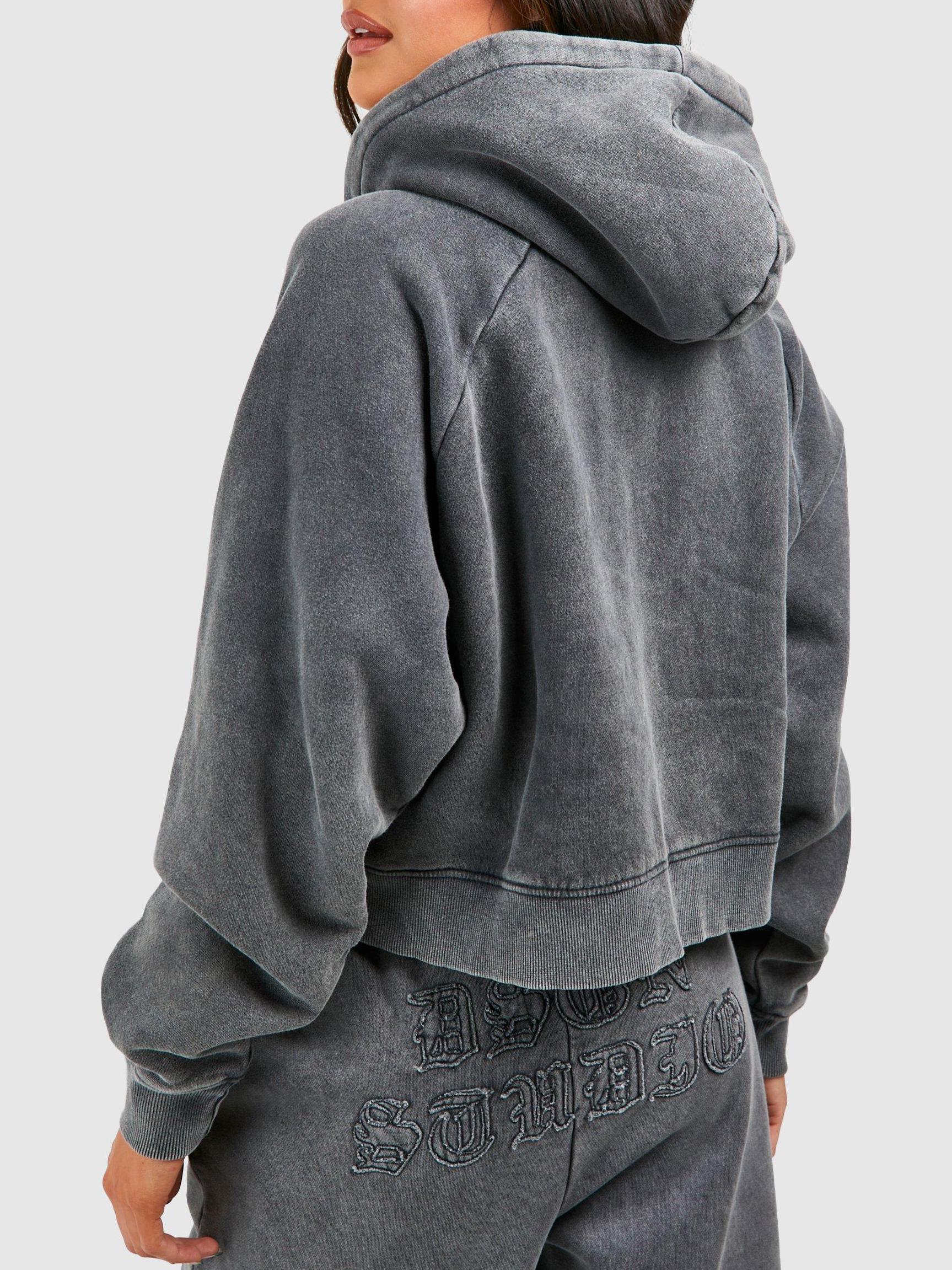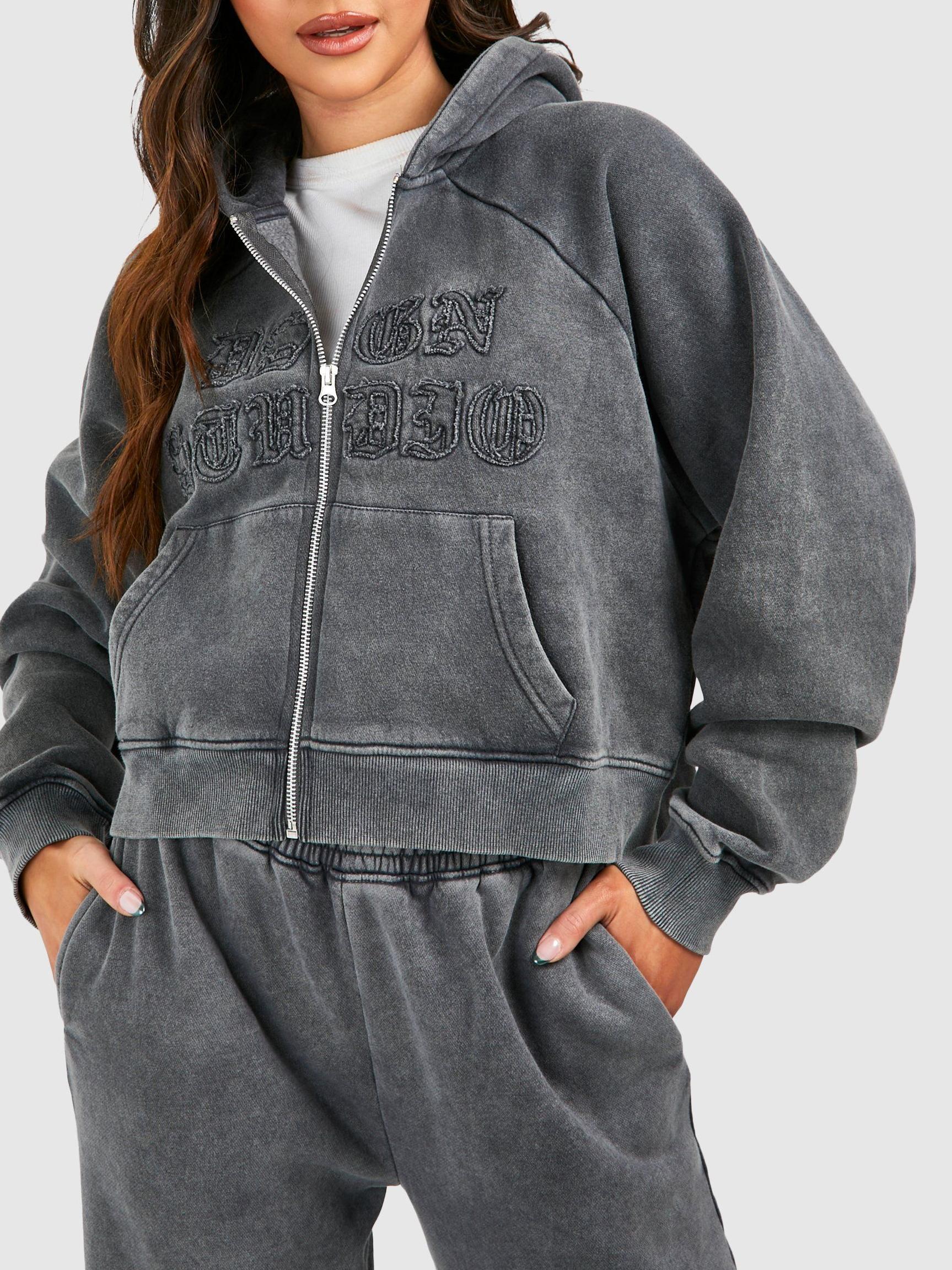 APPLIQUE WASHED ZIP THROUGH HOODIE 748