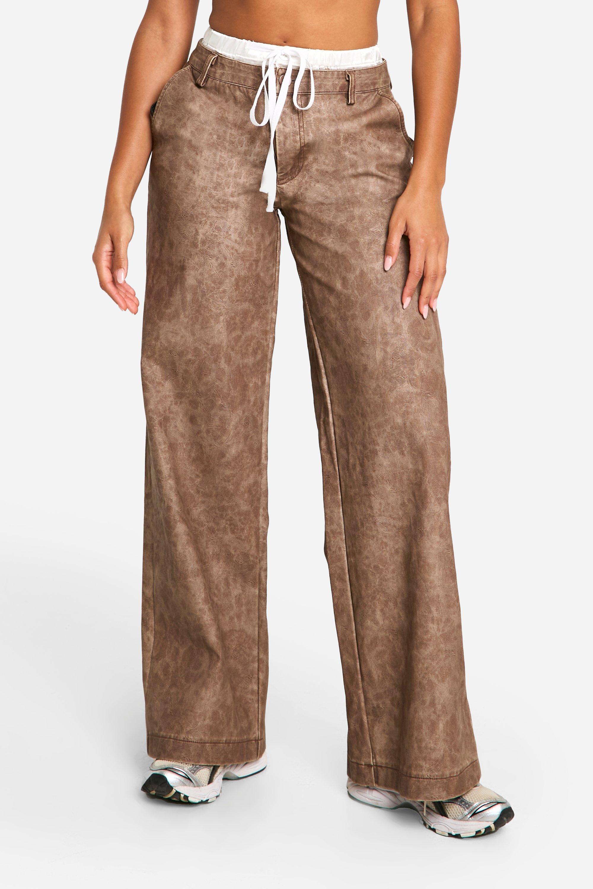 BOXER WAISTBAND WASHED PU STRAIGHT LEG PANTS 1109