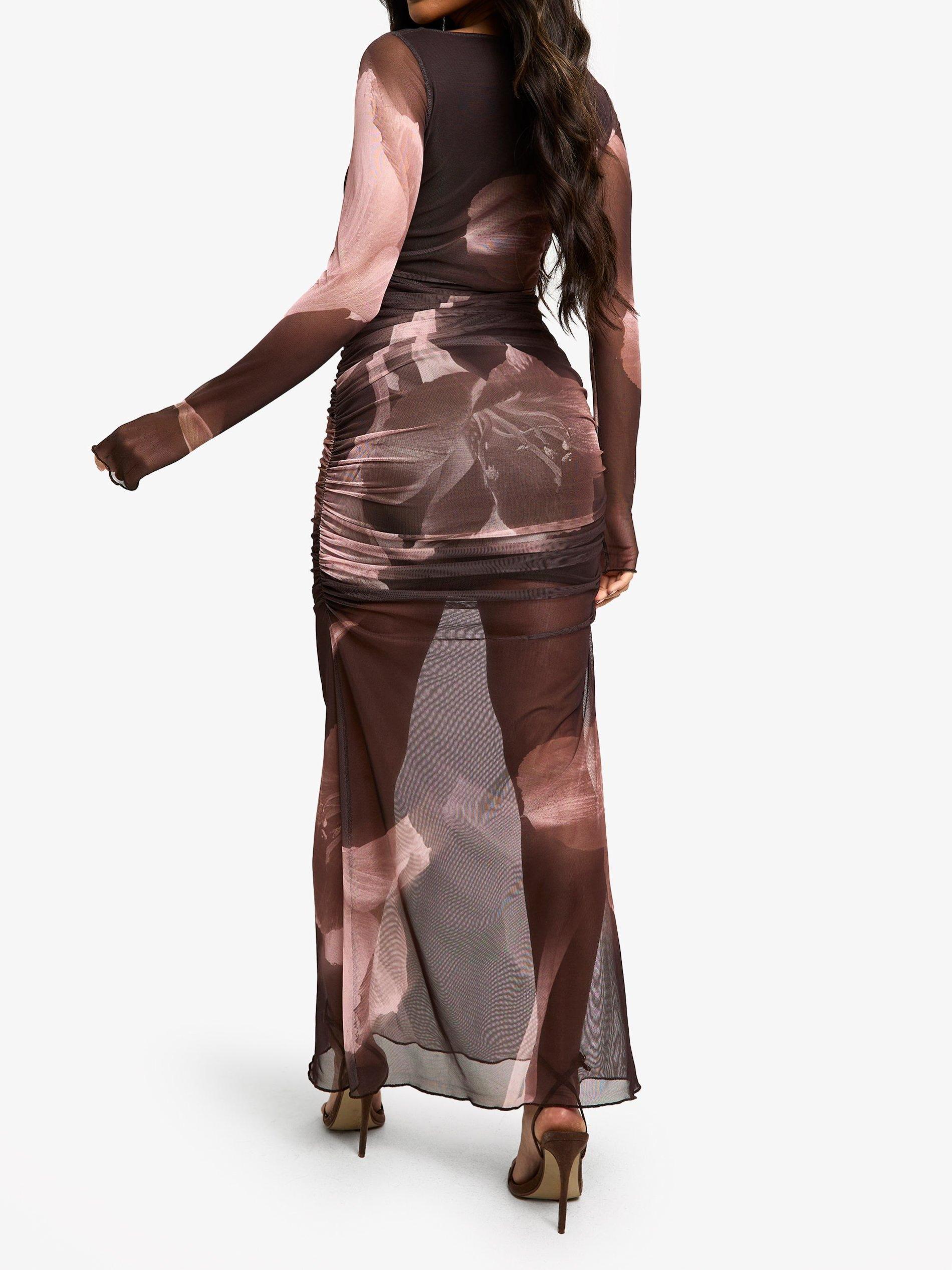 FLORAL RUCHED MESH MAXI DRESS 862