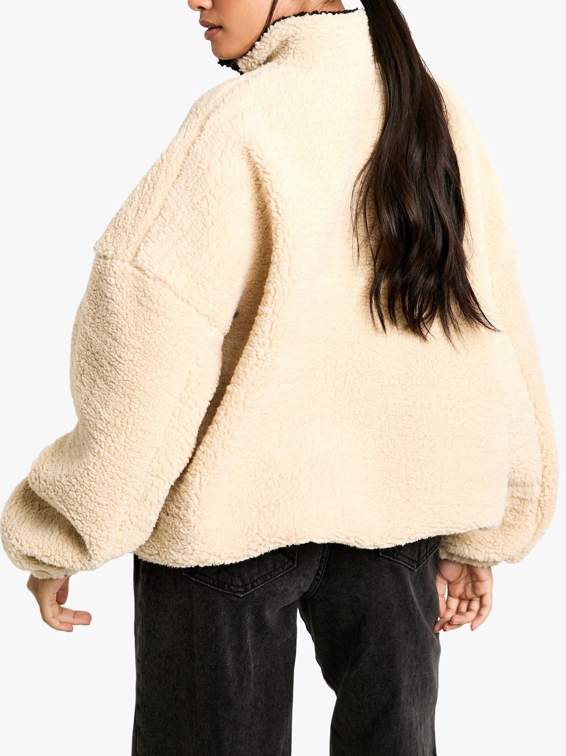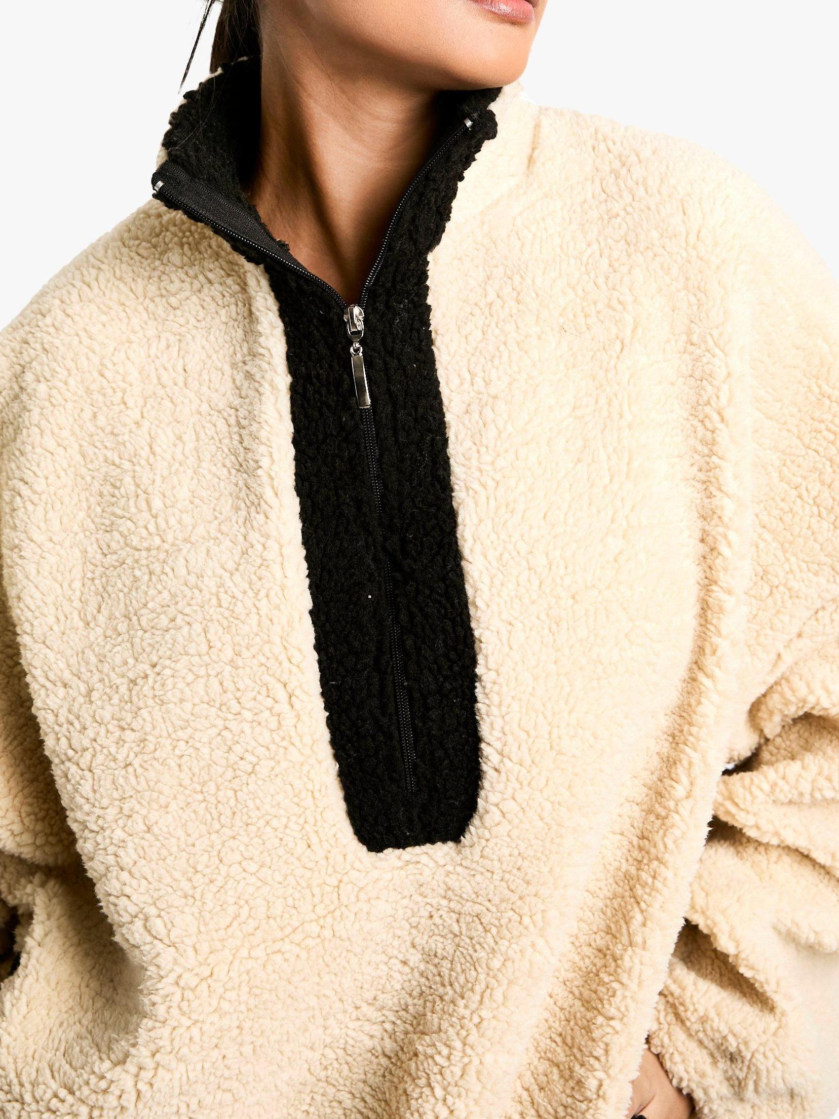 NYLON DETAIL HALF ZIP OVERSIZED BORG SWEATSHIRT 738