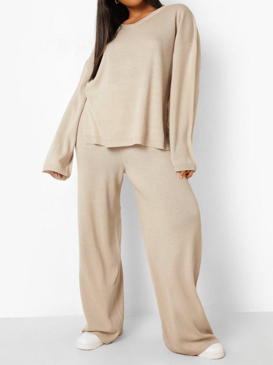 PLUS KNITTED V NECK SIDE SPLIT PANTS SET 824