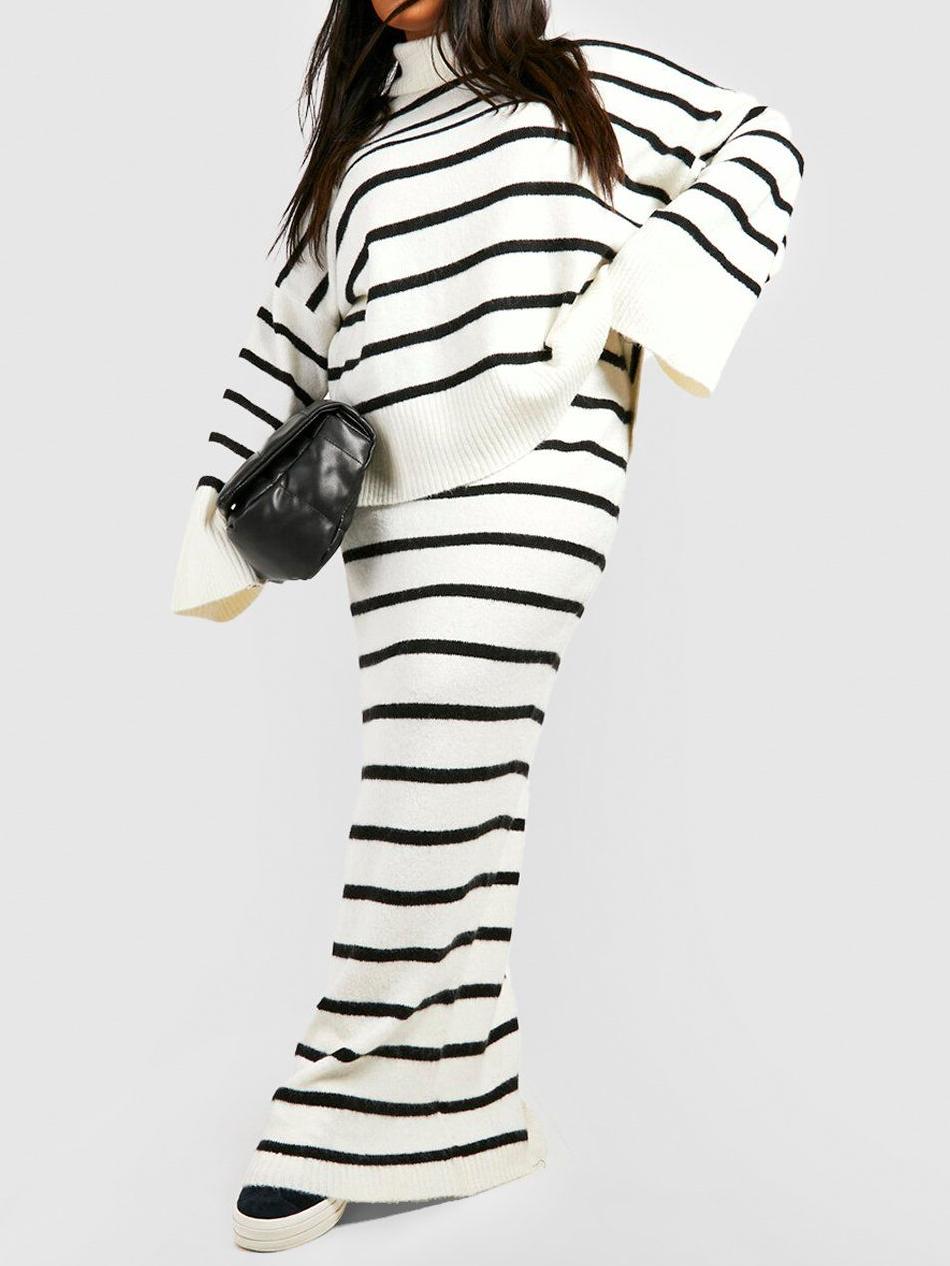 PLUS SOFT KNIT STRIPE SKIRT 1072