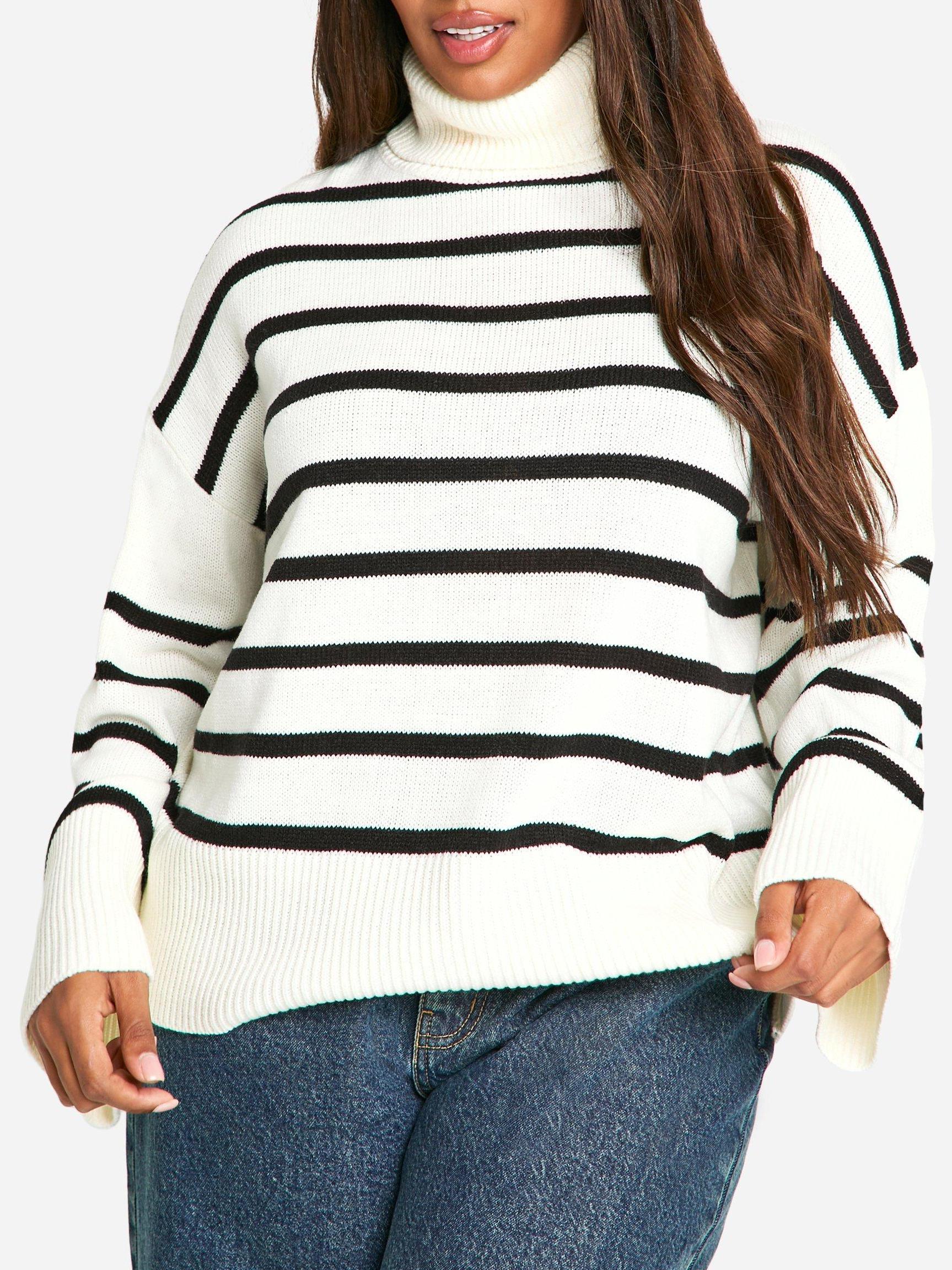 PLUS SOFT KNIT STRIPE SWEATER 698